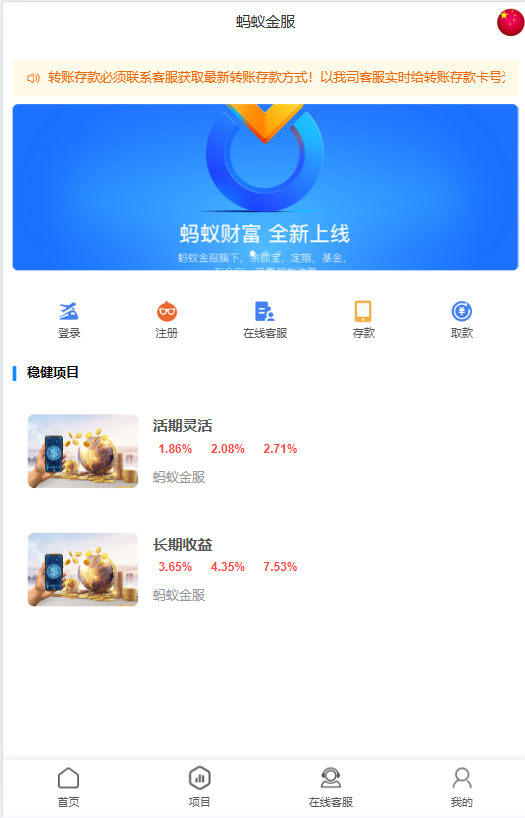 2开版9国语言/蚂蚁金服理财/带长短期余额宝/前端vue带源码 声明:本站所有文章,如无特殊说明或标注,均为本站原创发布。任何个人或组织,在未征得本站同意时,禁止复制、盗用、采集、发布本站内容到任何网站、书籍等各类媒体平台。如若本站内容侵犯了原著者的合法权益,可联系我们进行处理。