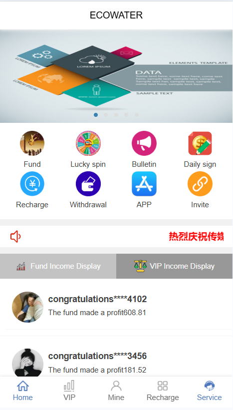 双语言EcoWater净水理财源码/海外产品投资系统/项目投资源码 带详细文本教程 声明:本站所有文章,如无特殊说明或标注,均为本站原创发布。任何个人或组织,在未征得本站同意时,禁止复制、盗用、采集、发布本站内容到任何网站、书籍等各类媒体平台。如若本站内容侵犯了原著者的合法权益,可联系我们进行处理。