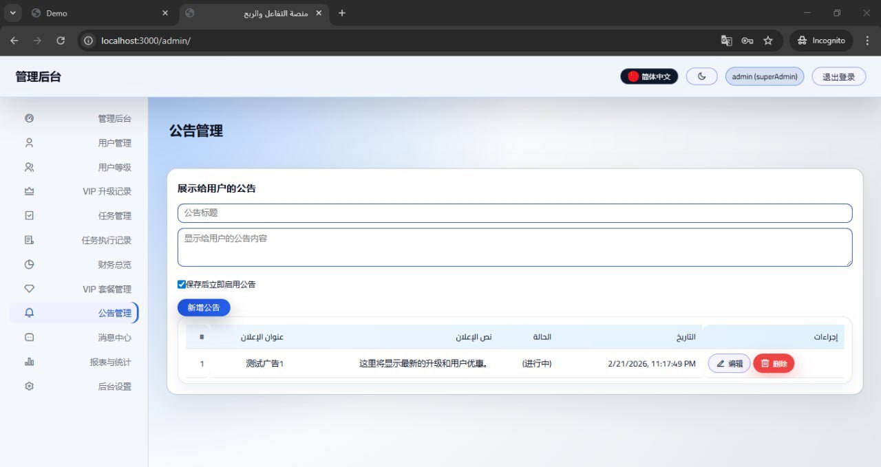 系统内置VIP会员等级升级机制,支持多层级管理和收益逻辑自定义。前端支持14种语言切换,后端支持6种主流开发语言环境,满足不同国家和市场的需求。
