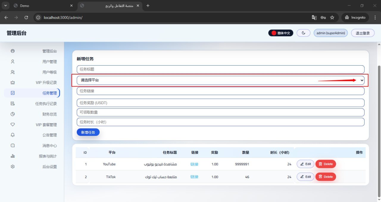 这是一套全新开发的全球化视频任务系统源代码,支持主流短视频和社交媒体平台的任务模式。系统采用模块化架构设计,源代码完全开放,便于二次开发和功能扩展。
